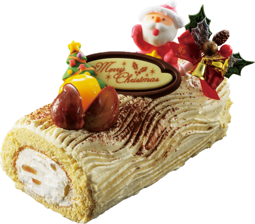 ロールケーキタイプのクリスマスケーキ。紅茶のロール生地と、たんぷりの山鹿和栗モンブランクリームを味わうことができます。