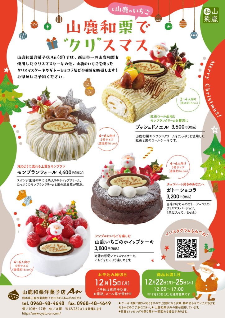 「山鹿和栗と山鹿のいちごでクリスマス」今年のクリスマスケーキのご案内です。